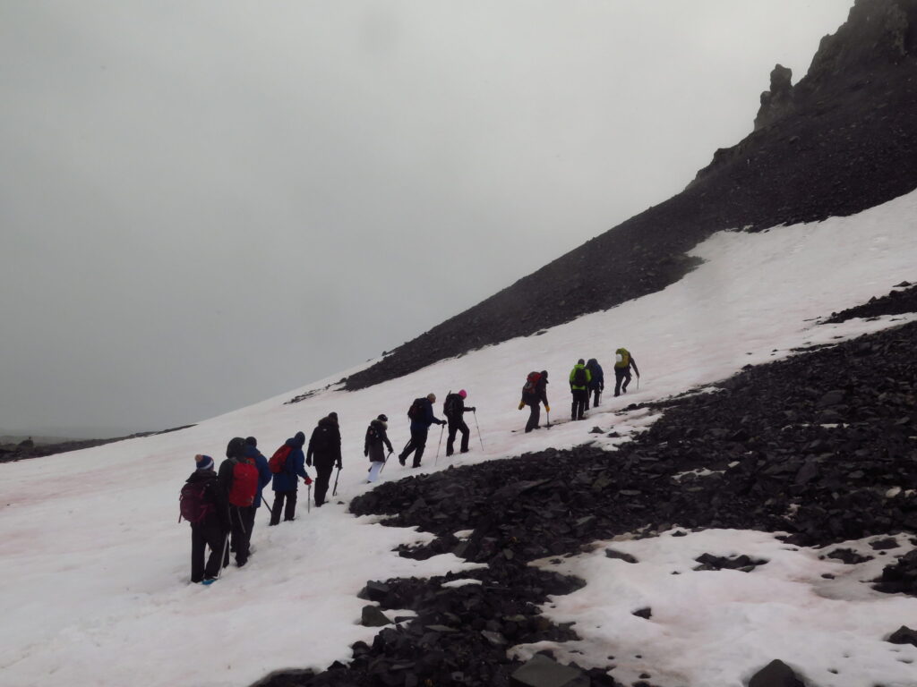 Weather rules all – 100% in the mountaineering world. The plan had been to go up a short but spectacular rocky ridge but low cloud and snow storms meant that the terrain would not have been suitable for us to use. Instead we hiked along the beach past the toe of the ridge and around […]