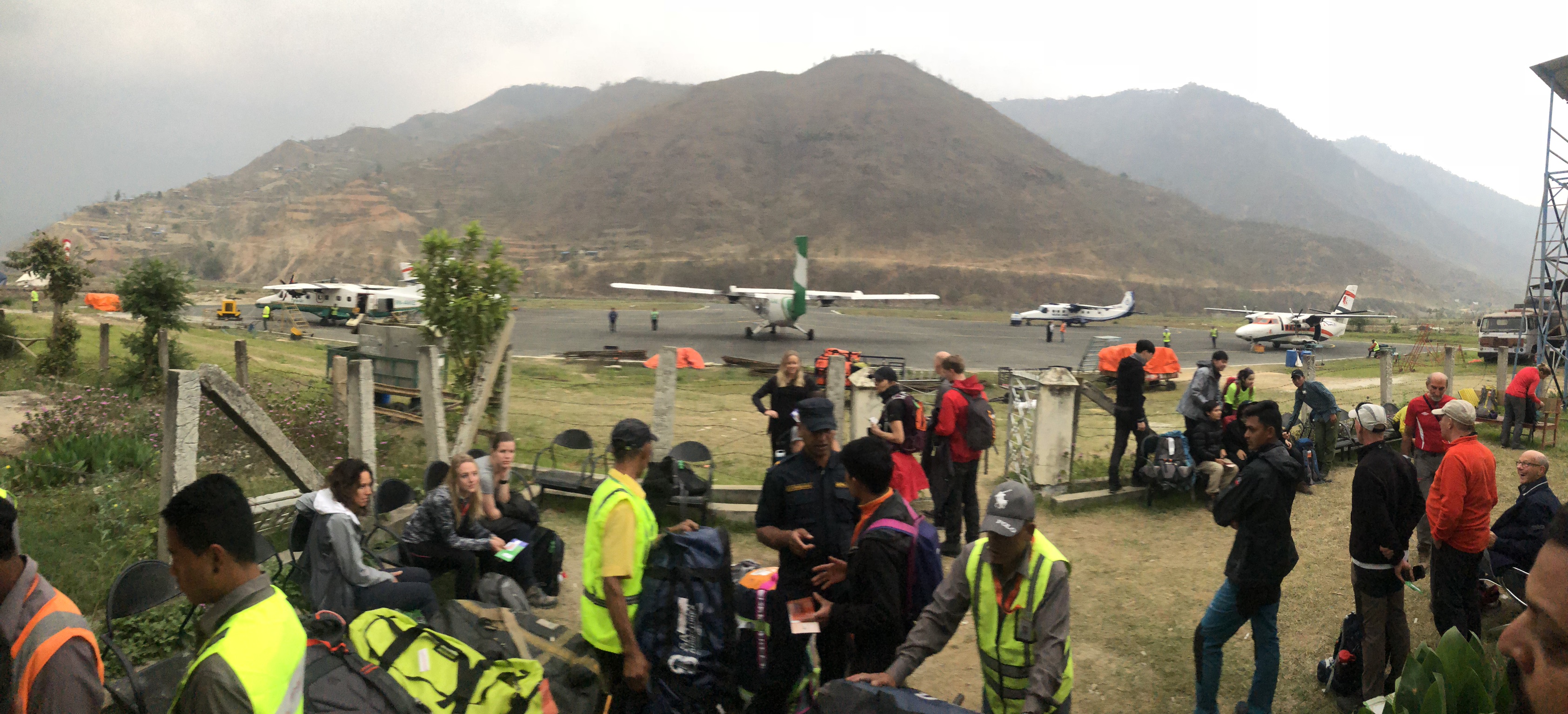 One of the more recent inexplicable changes was the sudden planned upgrade to the main airport in Kathmandu – announced only 1 1/2 weeks before the start of the main tourist season – so flights up to Lukla and other regional airports have been severely disrupted and instead climbers and trekkers must now travel by car/Jeep/bus to another rural airstrip in Ramechhap. Which is where we are currently sitting